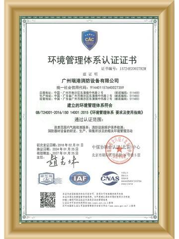 環(huán)境管理體系認證證書