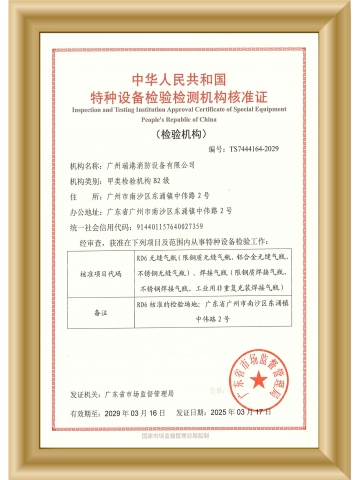 特種設備檢驗檢測機構核準證